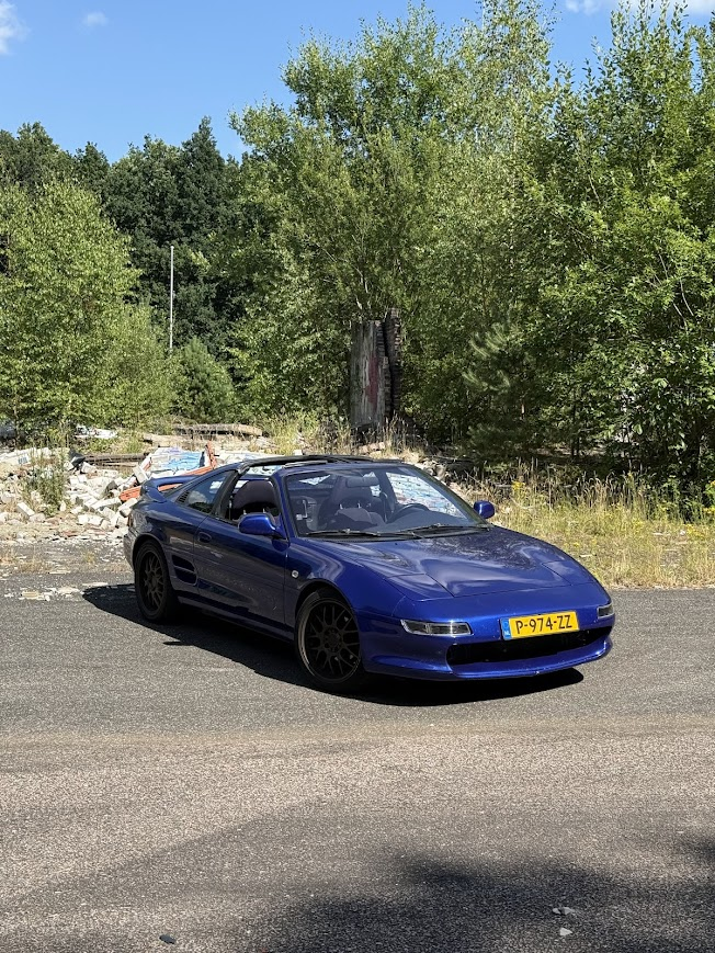 Donkerblauwe Toyota MR2 SW20 uit 1990: sportief en uniek.